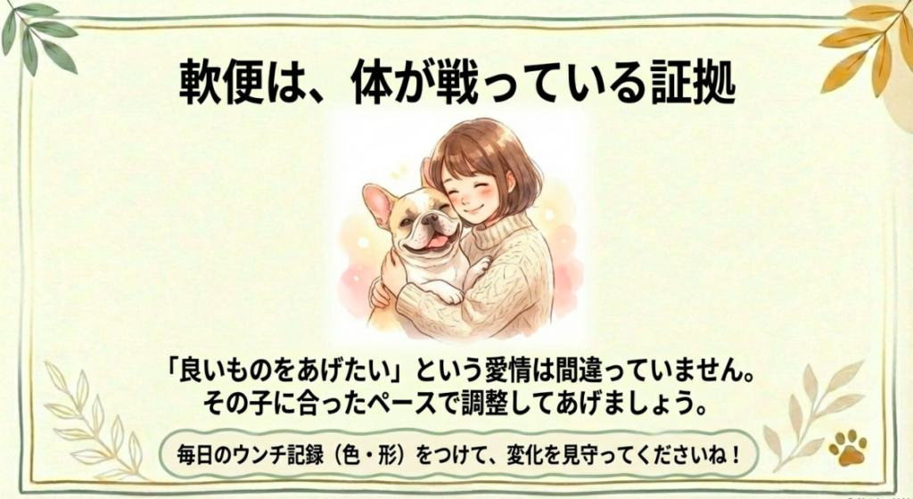 特に、良かれと思って選んだフードが原因だった場合、飼い主さんは自分を責めてしまいがちですが、その「良いものを与えたい」という愛情自体は素晴らしいものです!