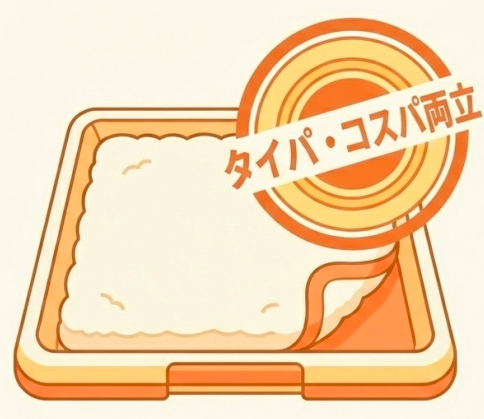 でも、交換回数の削減・掃除の手間・消臭スプレー代も含めると、厚型のほうが結果的に安くなるかもしれません。