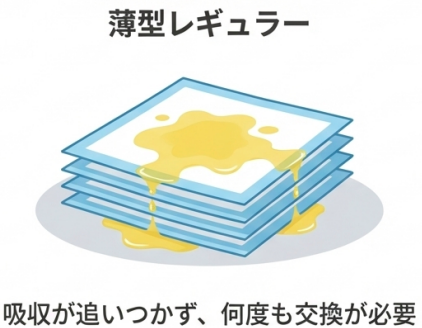 3〜4回分の尿を1枚で処理できるなら、薄型を1日4〜5枚使うよりトータルで安くなる可能性があります。