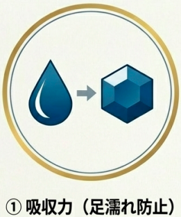 高分子吸水材(ポリマー)の含有量が多いほど、液体をゼリー状に固めて閉じ込める力が強く、液戻りが起きにくくなります。