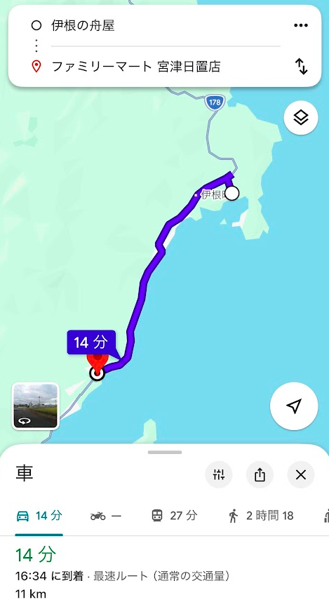 コンビニ情報ですが、国道178号線沿いのファミリーマート宮津日置店が、伊根の舟屋までの最後のコンビニになります。