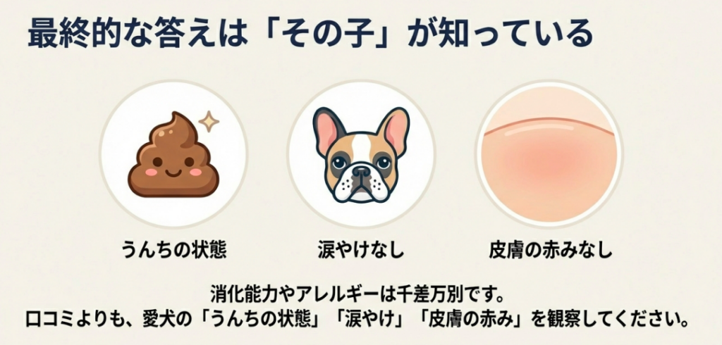 フレンチブルドッグといっても、消化能力やアレルギーの有無は千差万別ですからね!
